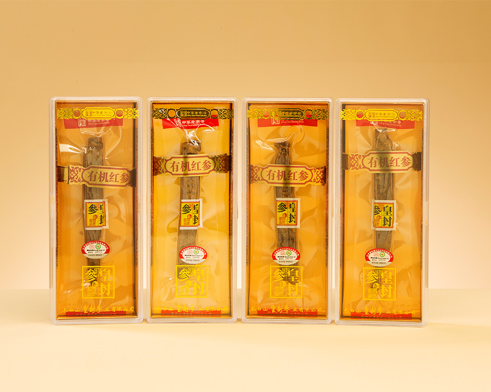 “皇封紅參”,色澤紅潤(rùn),氣味濃香。